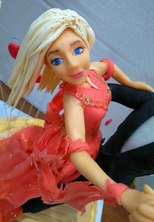 С фигурками на каркасе я пока несильно дружу,поэтому здесь фигурки на шпажках в ногах,руки на проволоке.Обычно без проволоки делаю,но везти торт надо было далеко,поэтому закрепила на всякий случай.