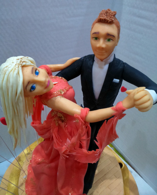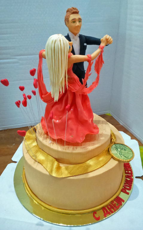Торты тематическиеТорт для танцора бальных танцев от его девушки и партнерши в одном лице.Дизайн ее.Костюмы и общие черты с их фото.