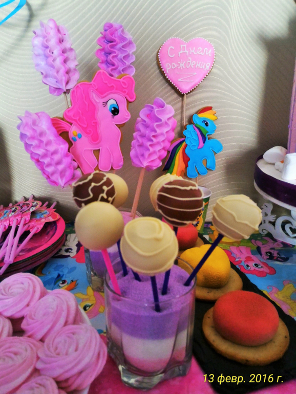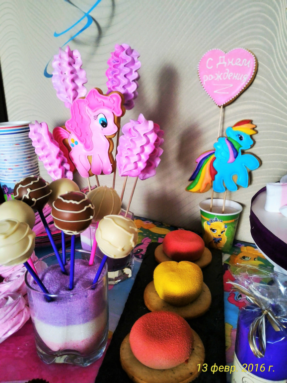 очень здорово! Какие безешки на палочках интересные! И прянички замечательные. Тортик такой высокий. С днем рождения дочку!