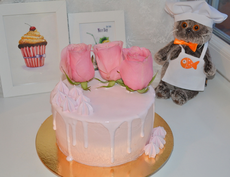 торт сразу отправился к столу по другому бы я побоялась, что они завянут, не нашла спец. колбочки,к сожалению,но все что внутри торта изолировано, а чем декорируете?