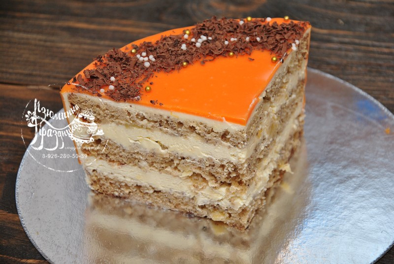 1. Торт Колибри - пряные коржи с кусочками ананаса и бананом, крем-чиз, зеркальная глазурь