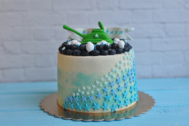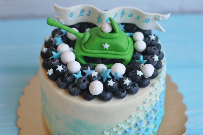 Ну я решила долго не расстраиваться и доработать тортик для своего любимого крестника) поэтому появился танк, а вместо топпера надпись на табличке :)