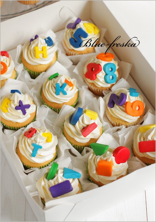 Инна, спасибо большое за нашу красоту!!! Имениннику оочень понравились!!! И гостям тоже! В разрезе не успела сфоткать)))) Капы были очень вкусные, и начинка и крем!!! Дедушка долго пытался прочитать, что написано цветными буквами))))