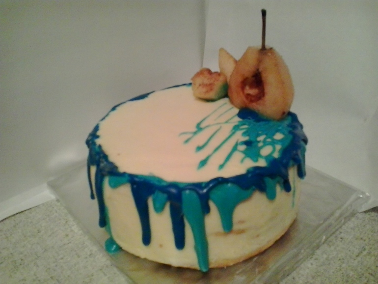 Тортик был с морозилки (10 мин), глазурь то моментально застывала, то стекала на подложку(((( Для себя решила, лучше возиться с приготовлением глазури, чем расстраиваться по поводу ужасных подтеков