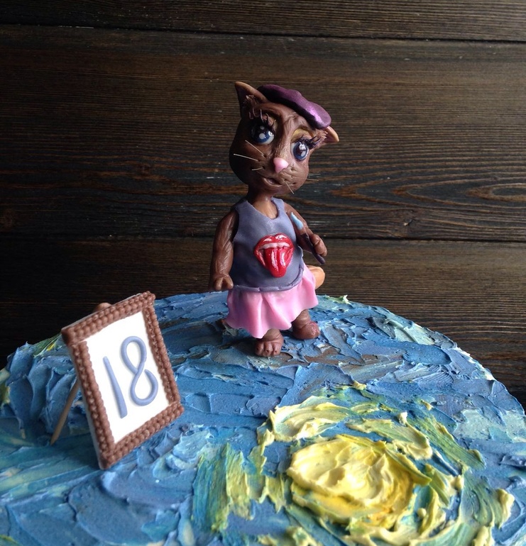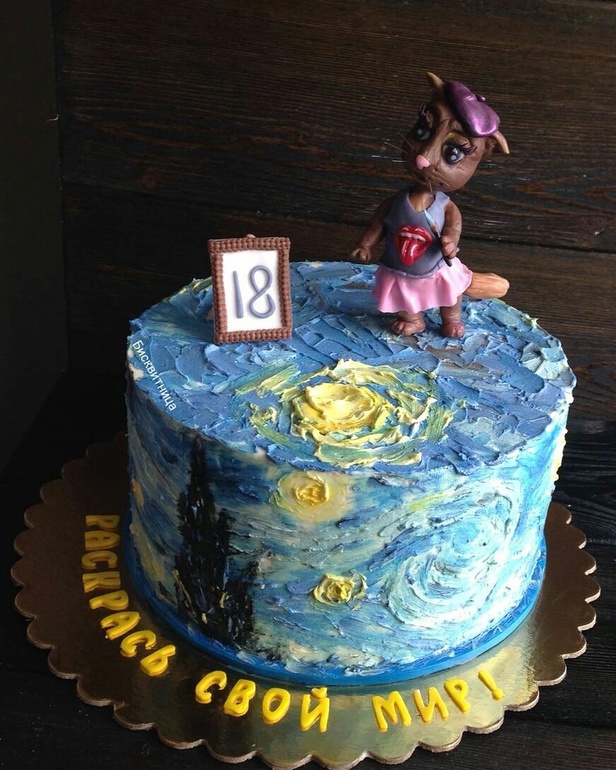 Торты для женщинПо мотивам Звездной ночи для юной и стилтной художницы.