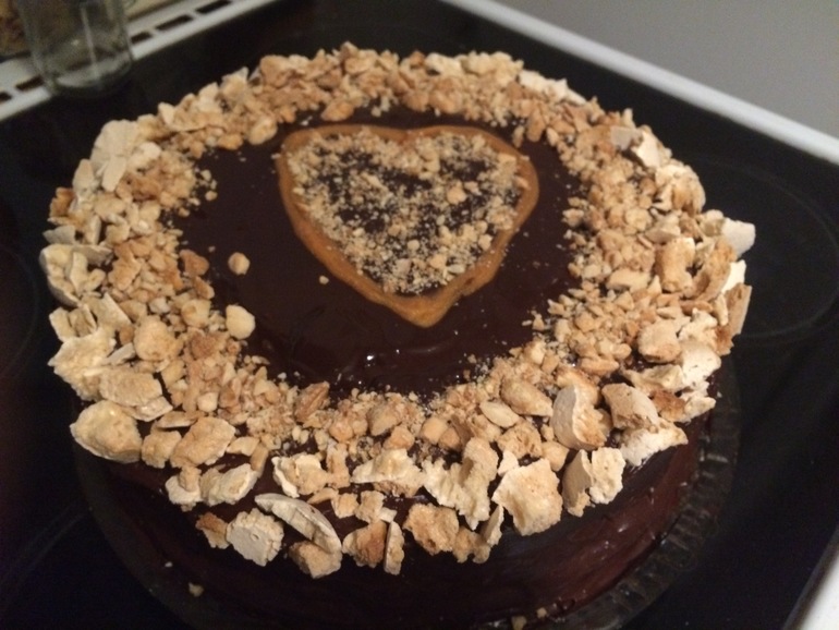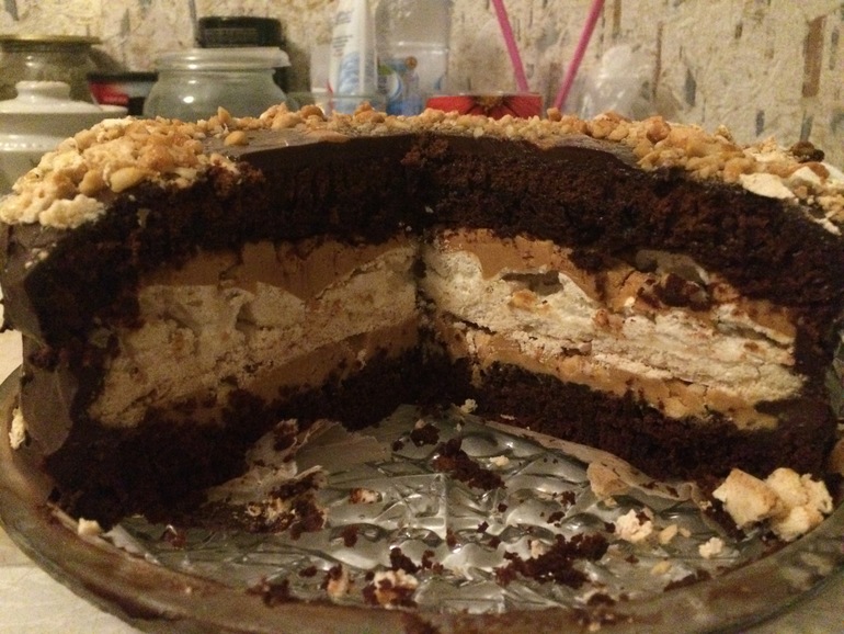 Проба пераПервый пекла мужу на День Рождения(он первый в жизни торт , который я когда -либо пекла, начинка Сникерс).
