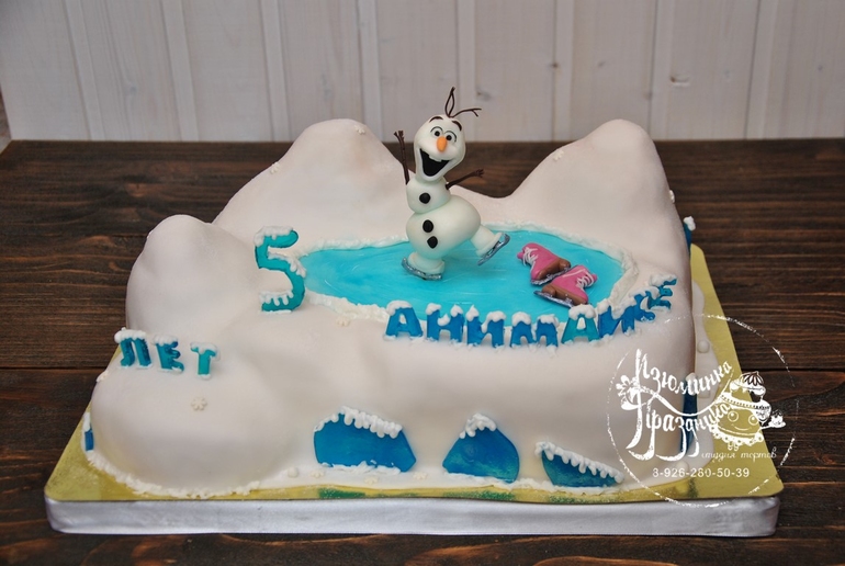 Торты детскиеСнежные сугробы, льдинки и Олаф - торт в стиле холодного сердца. Для девочки с красивым и редким именем Анимаиса, которая занимается фигурным катанием и мечтает о розовых коньках