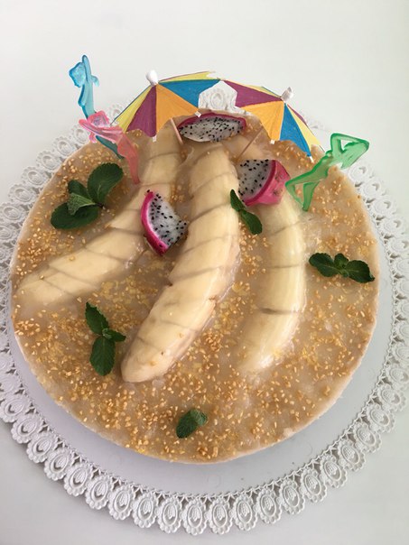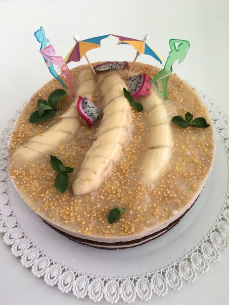 Вес тортика 3400 кг. Шоколадный бисквит,банановый мусс.диаметр тортика 25,5 см , высота 8 см.