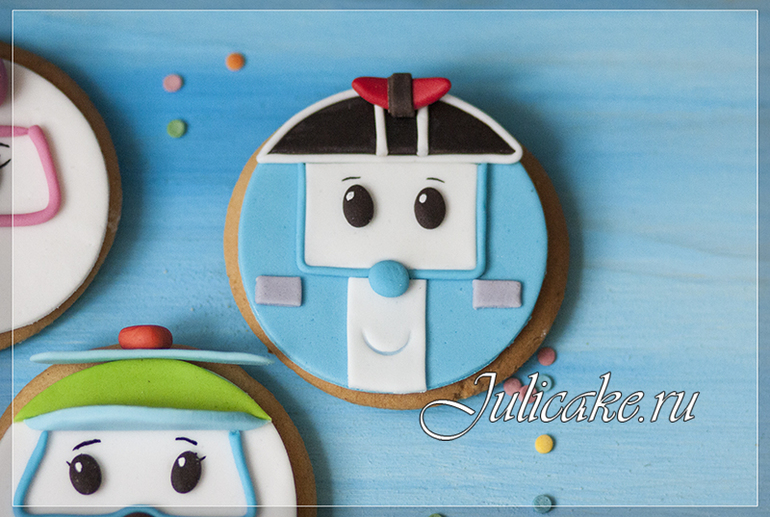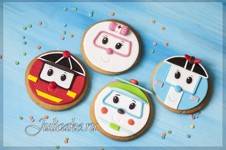 Печенье,пирожные,конфеты, выпечкаПеченье Поли Робокар! Ничего сверхъестественного, скорее как идея для детского дня рождения, когда нужно что-то долгохранящееся, без крема и т.д.
