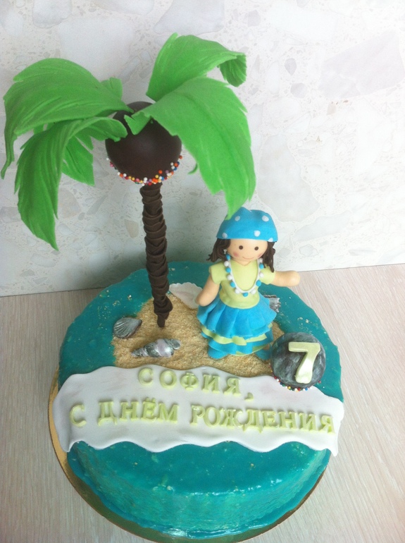 Пальму решила сделать из кейк-попсика и камушек на котором семерка))