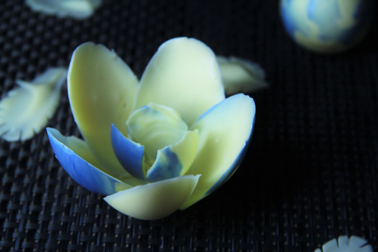 Да, муж у меня молодец))) Других уговаривать надо, а он сам предложил) Полусферы делала в форме для яиц, которая была в дверце холодильника))) А цветочек в ложках пластиковых первый раз...