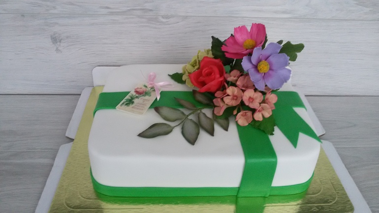 Торты для женщинКорпоративный торт для поздравления женщин с днем 8 марта.Вес 5 кг. При установке цветов ,задела розу и у нее немного обломались лепестки.Заменить ее было нечем. Что очень меня расстроило. Но главное что заказчику все очень понравилось и его женской половине коллектива тоже. Прислали фото ,отзыв и фото. А это главное! Ну все равно я очень напереживалась.