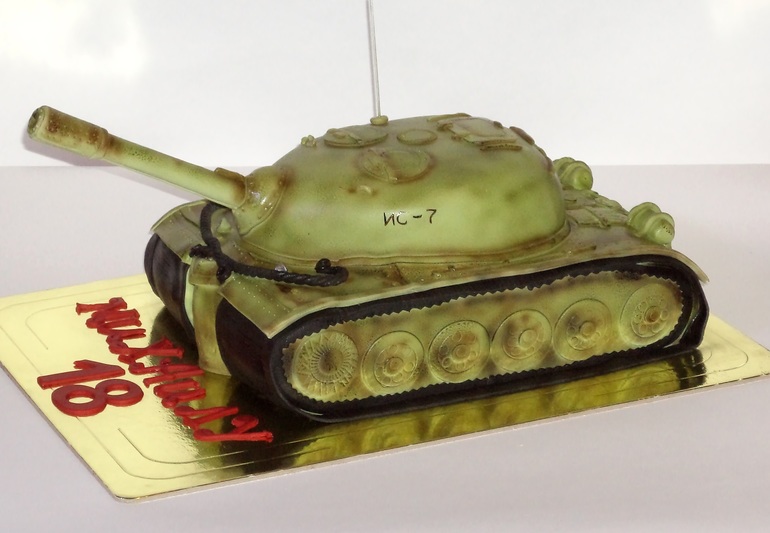 Торты для мужчинТанком уже никого не удивишь. Но вот у меня пополняется коллекция, сделанная по образцам реальных танков. Был ИСУ-152, теперь ИС-7 (если вы думаете, что они все одинаковые, то очень сильно ошибаетесь). Критика приветствуется.