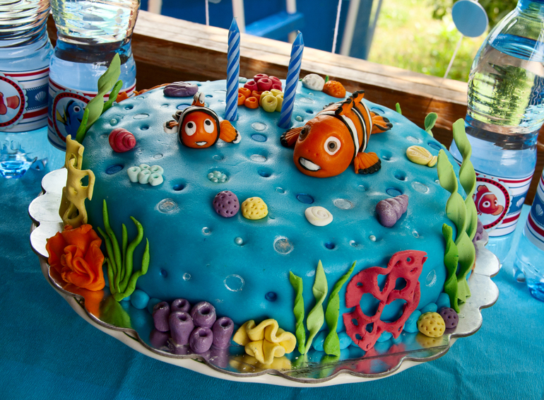 А это один из первых когда еще не знала про выравнивание и торт пошел пузырями, ладно хоть морская тема это позволяла