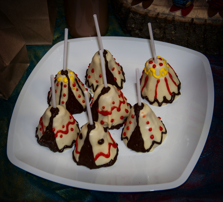 На вид самый домашний и не профессиональный из всех предыдущих... В этот раз и кейкопопсы в виде вигвамов самой не понравились... Хотела поменьше красителей детям и украсила только белым и темным шоколадом... Получилось плохо... Добавила красную глазурь... Все равно не помогло
