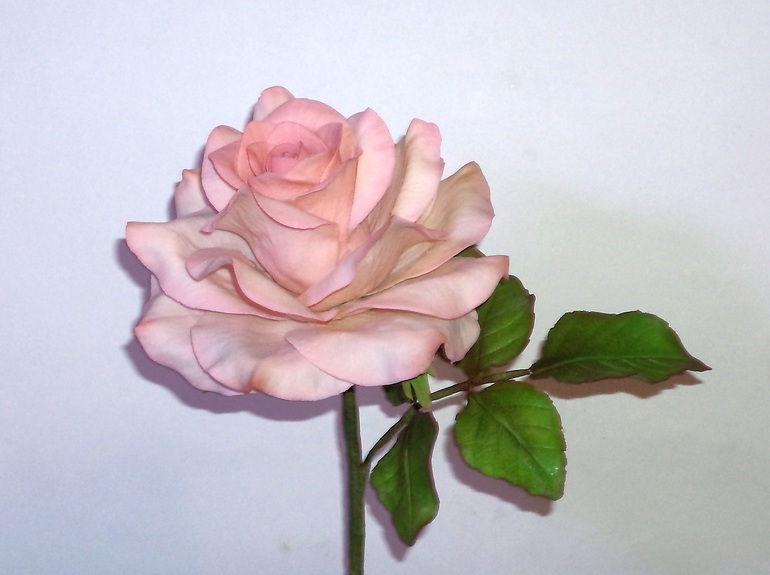 Выставляю фото как обещала. Тоже давно розы не делала. поэтому немного забыла, нужно ли пропаривать чашелистики или нет, и забыла их сразу оттонировать, тонировала уже на розе, что не очень удобно. И сделала их немного грубовато (но принцип будет ясен)