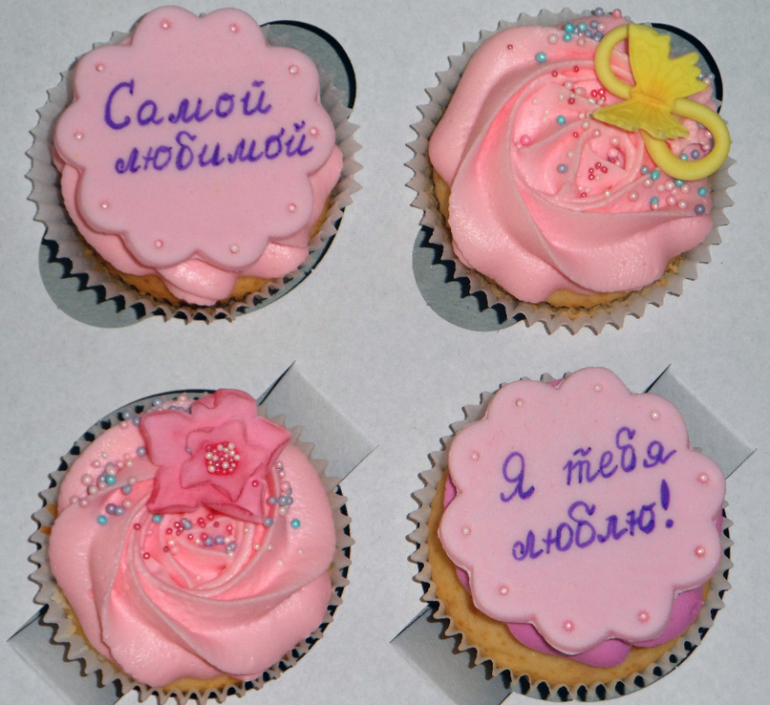 Ванильные капкейки, с начинкой ассорти: солёная карамель, ягодное конфи, лимонный курд, сырно-сливоч