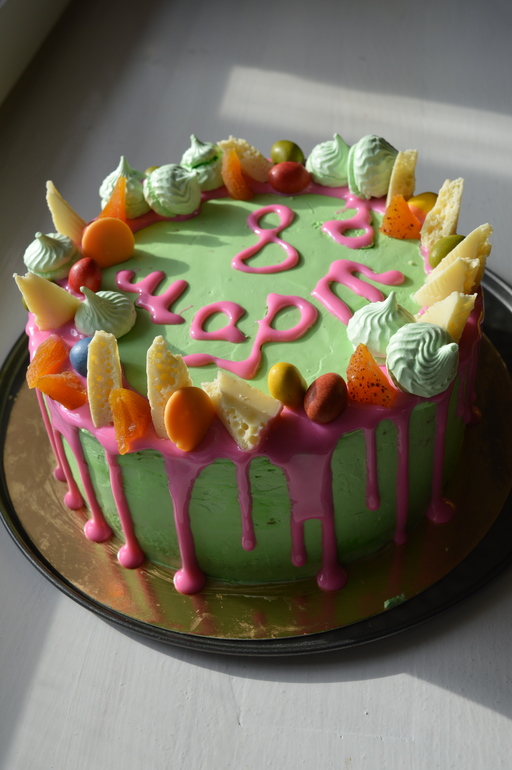 Дочке торт хотела испечь,но смотрю у всех красиво он смазан что ль, у вас зеленый у кого белый.заказать не успела,вот сижу рецепты ищу.