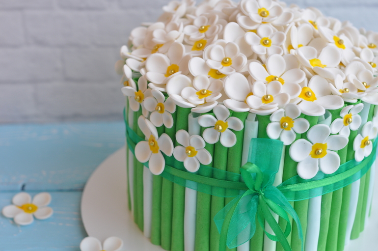 Раскатывала мастику, наматывала на обычную трубочку для коктейля, и оставляла сушится. Потом просто вынимала трубочки и крепила на торт, обмазанный тонким, практически прозрачным слоем шоколад+масло.