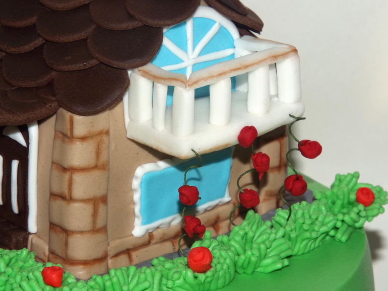 Торты тематическиеДомик с балконом,цветущие розы,машина))
