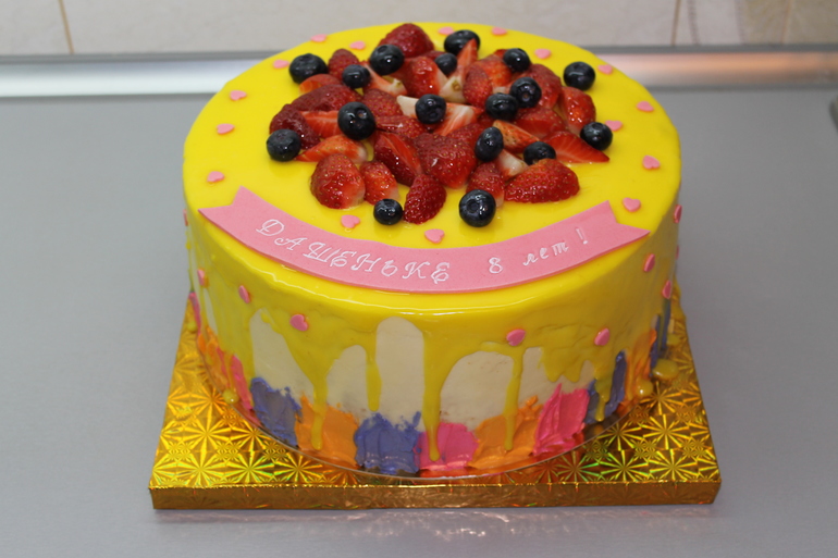 Украшение тортов кремом,шоколадом, фруктамиМолочная девочка со сливочно-сметанным кремом, клубника, голубика, верх - крем-чиз, 5кг