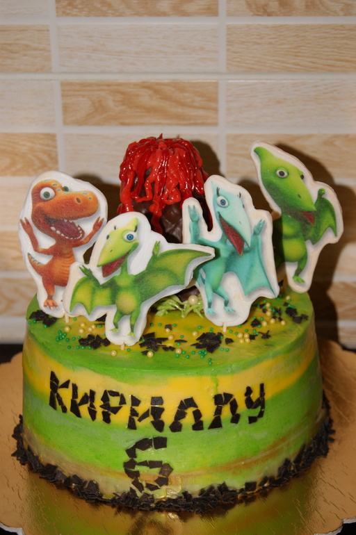 Торт для фотосессии на годик. Ванильный бисквит,сливочно-творожный крем,бананы. Покрыт белково-заварным кремом. 1,3 кг.