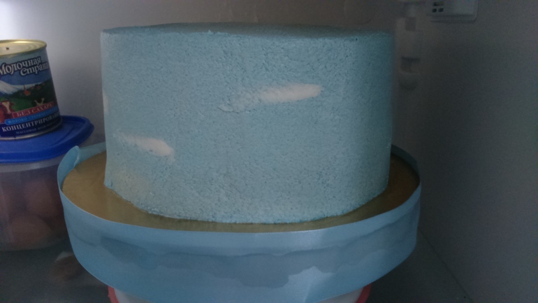 Выравнивала кремом масло+сливочный сыр. Почему-то краситель не идеально ровно размешался, а как будто небольшими крупинками.