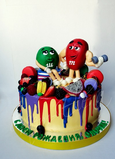 Украшение тортов кремом,шоколадом, фруктамиДевушке на 30-летие заказали подруги. Внутри творожный крем, ягоды и клубничный мусс. Вес 3,8 кг. В фигурках воздушный рис. (буква "М" перевернута намеренно,у девушки фамилия на "Ш" начинается и подруги зовут ее чаще всего по фамилии)))