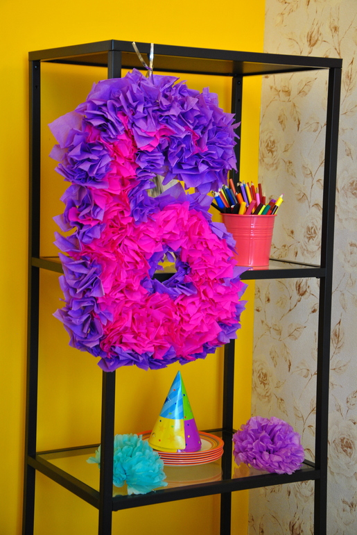 декорации - сделала цифру 6 и вертушки, помпончики, было еще дерево пожеланий, но тоже без фото((( Вот что значит поручить фотографирование праздника мужчине(((