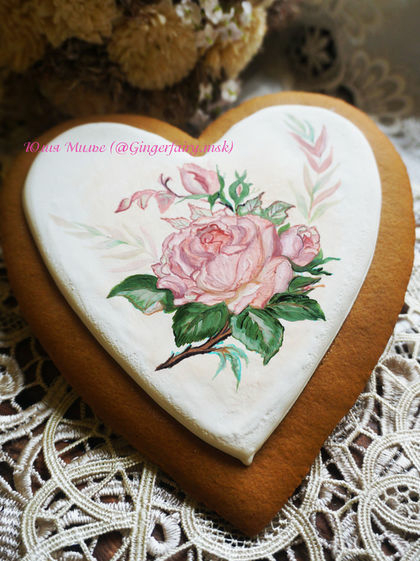 покажу еще одну свою старенькую работу. Это большой для меня пряник 18 см, разумеется полностью ручная роспись. А большие формочки это наболевшая тема)) В свое время, когда еще не было у нас в России гигантских формочек от 10 см)))) а были только маломерки от вилтон, за которыми еще приходилось охотиться и по разным нашим городам, и из Америки заказывать , много таких роз было нарисовано в мини-виде)