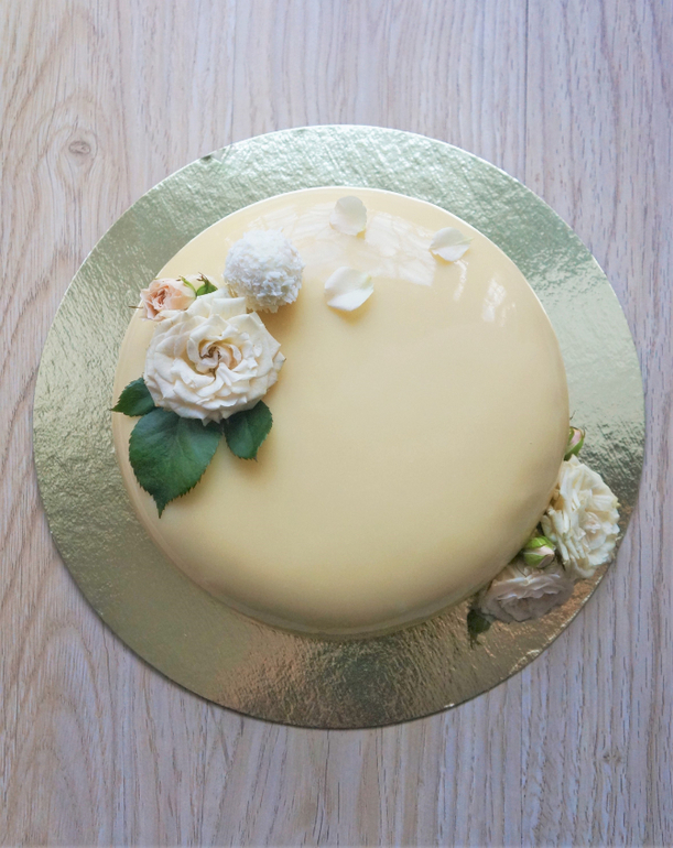 Украшение тортов кремом,шоколадом, фруктамиЗаказали муссовый тортик и все бы ничего, но цвета шампань. Были еще варианты, но приоритетный цвет этот. Не знаю на сколько он удался, но вот что вышло: в составе мусс на белом шоколаде, ягодное конфи и вишневый мусс с маскарпоне.