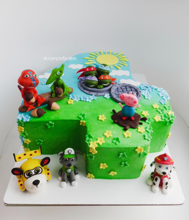 Украшение тортов кремом,шоколадом, фруктами..... из мультфильмов "Поезд динозавров", "Свинка Пеппа","Черепашки Ниндзя", "Щенячий патруль", "Врумиз")