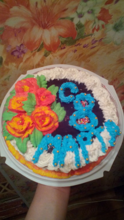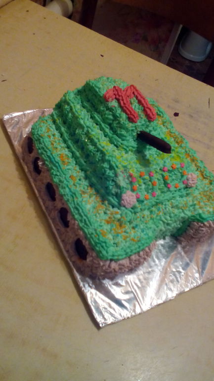 Лен, ругаться сильно не буду, но пока это все очень плохо. тортов много, а прогресса нет. 1. текстура крема. посмотрите на розы: часть расплывшаяся, а часть с рваными краями - вы не нашли пока нужную консистенцию вашего крема, продолжайте тренировки и обязательно смотрите видео мк, где видна текстура крема; 2. подбор цветов. это реально ужас, извините. на одном торте розовый, желтый, коричневый, белый и....синий!!! куда это все?! это аляписто. так не делают. ищем таблицы сочетаемости цветов и всегда им следуем; 3. не используйте эти дурацкие вафельные ромашки. никогда; 4. забудьте об этой белой паутине, что вы на каждый торт лепите. это неряшливо и ни к чему. вы хотели что таким образом симитировать? кружева? тогда смотрите мк по технике ришелье и по кружевам из айсинга, а это поливание торта оставьте; 5. ярусы под крем тоже должны быть пропорциональны! не блинами низкими навалены друг на друга, а иметь 8-9 см разницы в диаметре, высотой должны сочетаться. крем на ярусах должен лежать не слоем разной толщины, а одинаково по всем бортам; 6. отсутствует дизайн.. то есть видно, что стали делать торт и то тут, то там захотелось цветочек приделать, тут бабочку посадить, а тут розового фигакнуть. так быть не должно. продумываем в голове дизайн (вот что это за дуло у танка?? вы специально его таким сделали или просто больше ничего дома не оказалось?), рисуем (!! для вас принципиально рисовать в цвете!) и подбираем ингредиенты (бабочку вафельную ладно уж, но ромашки- неее..); 7. подложки и фон!!! ну, нельзя на фоне батареи фоткать торт! от этого он еще более не аппетитным кажется. зачем сама себе портите работы? это же ваше портфолио. а заказать торт по таким фоткам не хочется. пока так. ждем новых работ. удачи!