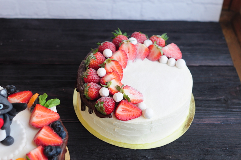 Украшение тортов кремом,шоколадом, фруктамиСколько же было радости, когда я нашла клубничку идеальную, маленькая и ровненькая :) Ну и конечно же срочно ее на торт всю нужно выложить))) А то как не зайдешь в магазин и там просто какая то клубника страдающая гигантоманией)))