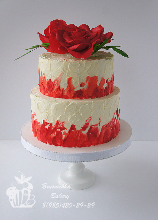 Очень красивые мазки! Вот прямо очень-очень! А розочка в сердцевинке грубовата, там бы лепестки потоньше и поволнистей, понежней хотелось. Общий вид тортика очень нравится, и листья у розы, и цвет очень классный!