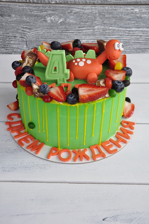Украшение тортов кремом,шоколадом, фруктамиНаконец мои желания были услышаны вселенной, и мне заказали безмастичный торт да еще и с ягодами!) Радости не было предела) с подтеками накосячила конечно( и динозавру забыла блики сделать на глазах. В общем и целом мне нравится делать такие торты)