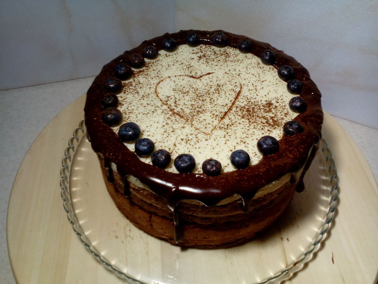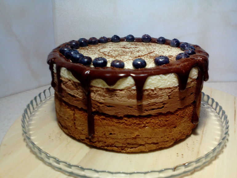 делала на свой др была попытка сделать три шоколада,но напутала с рецептом.корж получился высокий(температуру не ту выставила),первый слой не взбила(из головы вылетело)....но все равно получился вкуснячий.