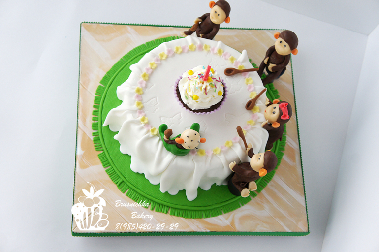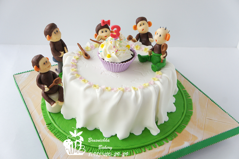 Торты детскиеКак же сложно иногда даются заказы полностью продиктованные заказчиком(( И лепка обезьянок мне тоже не давалась. Иногда наипростецкую фигурку леплю дольше,чем сложную. Молочная девочка,персики,клубника,маскарпоне. Вес 3.3кг