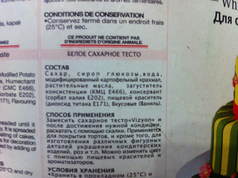 Возможно и не всё растительное. Вопрос спорный. В состав входит стабилизатор Е 422, это глицирин. Получают глицерин методом гидролиза масел и жиров растительного и животного происхождения. Какие жиры использовали для производства глицерина в этой мастике не известно) Не хочу показаться занудой)) это так, для сведения, вдруг для кого-то это принципиально.