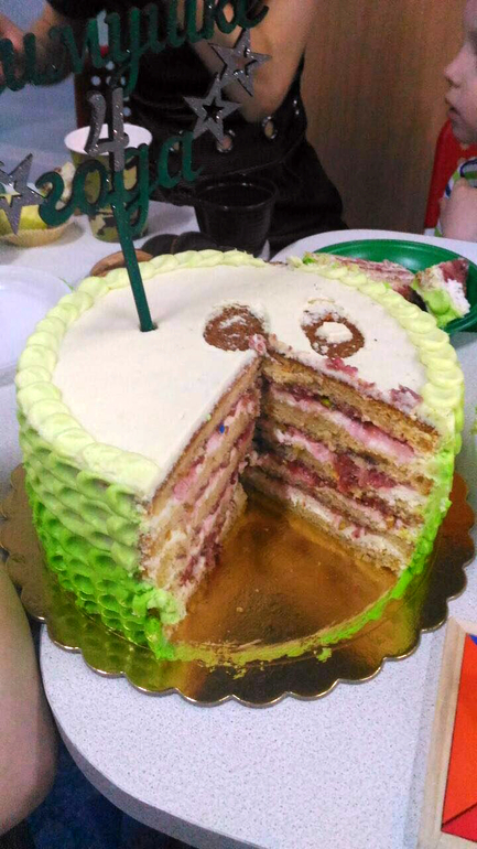 Украшение тортов кремом,шоколадом, фруктамиКремовый. Внутри Нежный белый бисквит, сырный крем, клубника и фисташка. Остались довольны, что не может не радовать))
