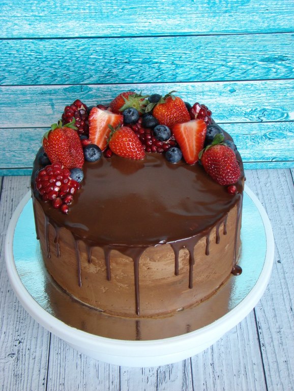 Украшение тортов кремом,шоколадом, фруктамиШоколадный сочный бисквит, шоколадный крем, ганаш, глазурь! Торт для настоящего шокоголика)))