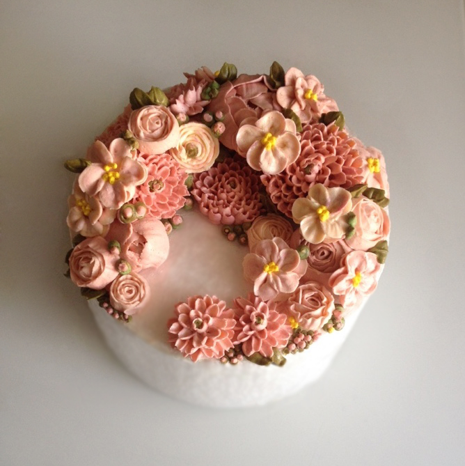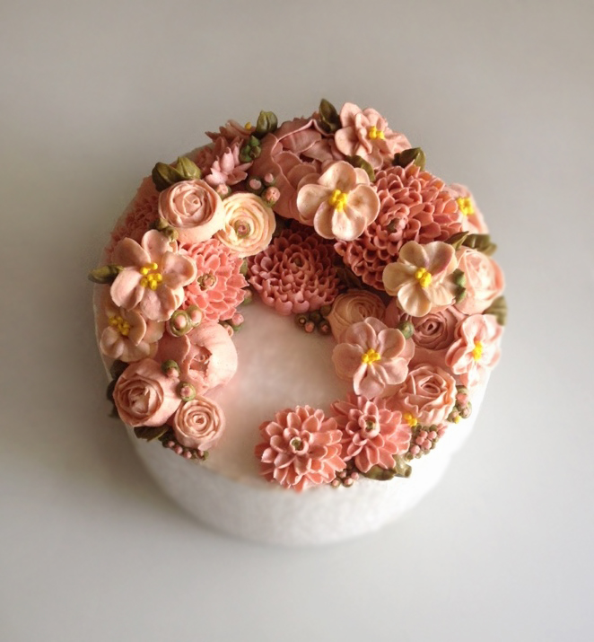 Украшение тортов кремом,шоколадом, фруктамиОстался крем, я решила, что можно ещё один тортик сделать )) Похожий, цветочки немного другие. Намучилась я с зелёным цветом. Еще ни разу меня не устроил зелёный цвет, как бы я не смешивала , получается не то, что мне бы хотелось.