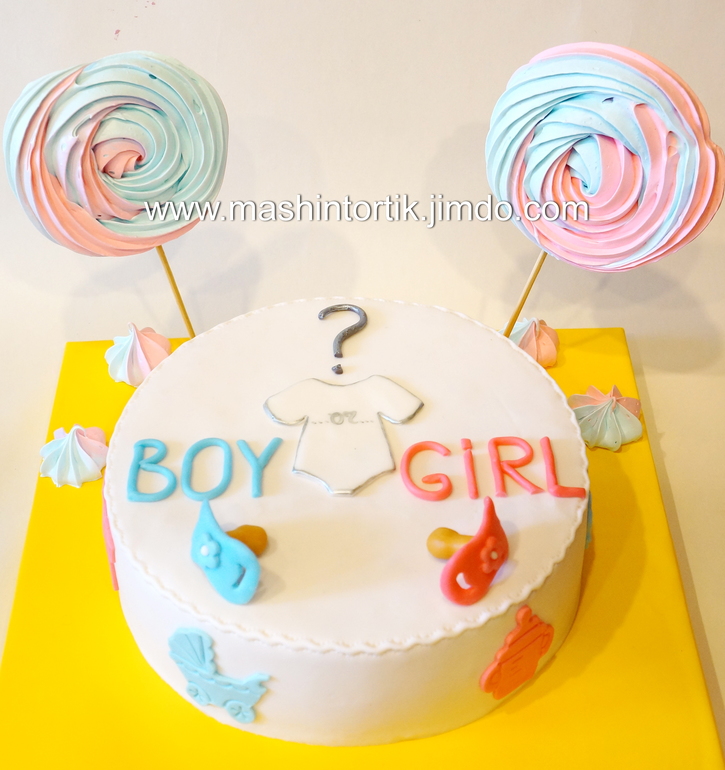 Торты тематическиеа попросту - на оглашение пола будущего малыша родственникам :) внутри творожно-сливочный крем ....го цвета :) могу только завтра написать какого :)) а еще в креме есть вишня и персики. вес 2,2 кг