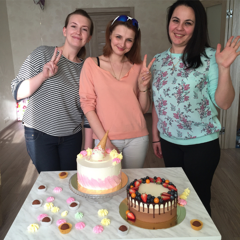 Вик, все мои достижения были как раз после именно такого МК. Я тогда ни розы делать не умела -однако первый торт в розах вышел вполне хорошо, а второй я считаю уже почти идеальным (оба есть в дневнике) . Подтеки делать девочки попробовали и сами. Хотя свои подтеки я научилась делать сама, тк на МК нам сказали и показали что нужно просто вылить по кругу растопленный чистый шоколад... Выравнивать будут тренироваться уже дома, тут одного раза не хватит. Три шоколада они делали сами :) я им на белом муссе объяснила технологию а потом они сами торт заливали. Я всегда сразу рассказываю о подробностях МК, делаю акцент что он больше демонстрационный, если кто-то понимает, что хочет практику, то просто не пойдет на такой мк. если кому-то нужен будет именно практический -то тоже с ужовольствием его могу сделать..