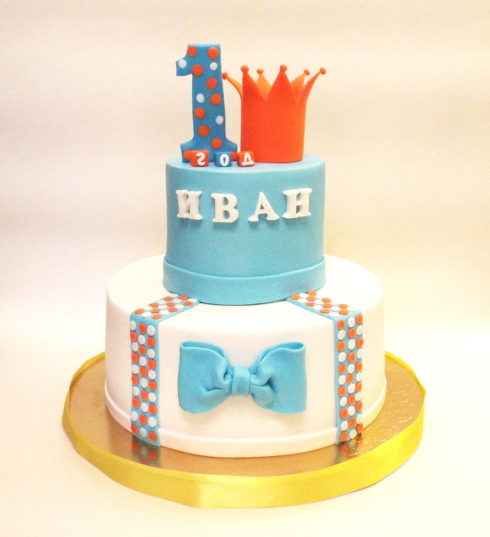 Торт для Ванечки на годовасие.Совместная работа с Татьяной-пряничной мастерицей.Низ песочный шоколадный с малиной,верх -медовик.Вес 4,5 кг.