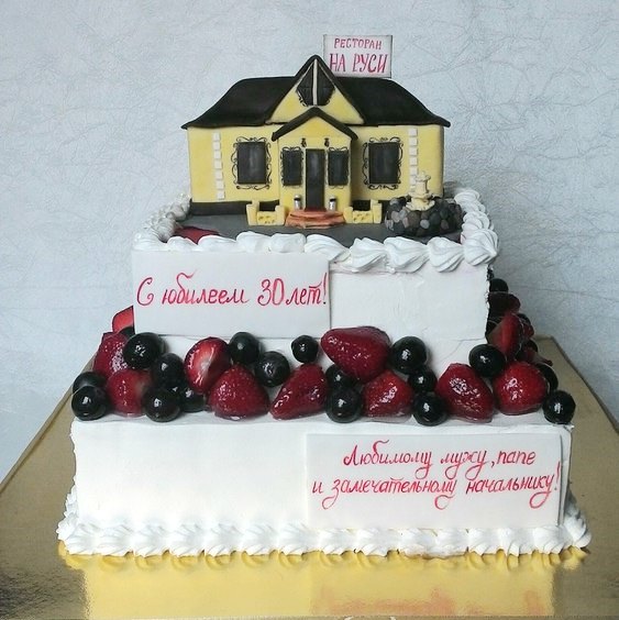 Торт с йогуртовой начинкой. Декор сливки. Торт для владельца этого ресторана.