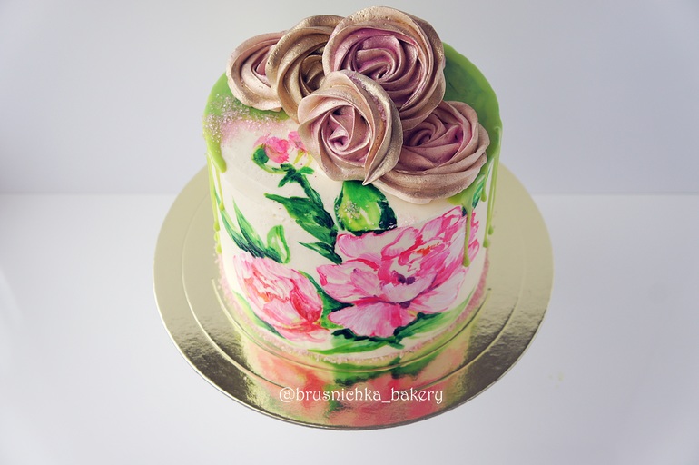 Впервые рисовала на сырном креме, сложно, но можно)