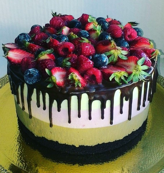 По желанию девушки торт потерпел некие изменения. А именно, горький слой мусса был заменен на клубничный мусс с добавлением в него свежей клубники.