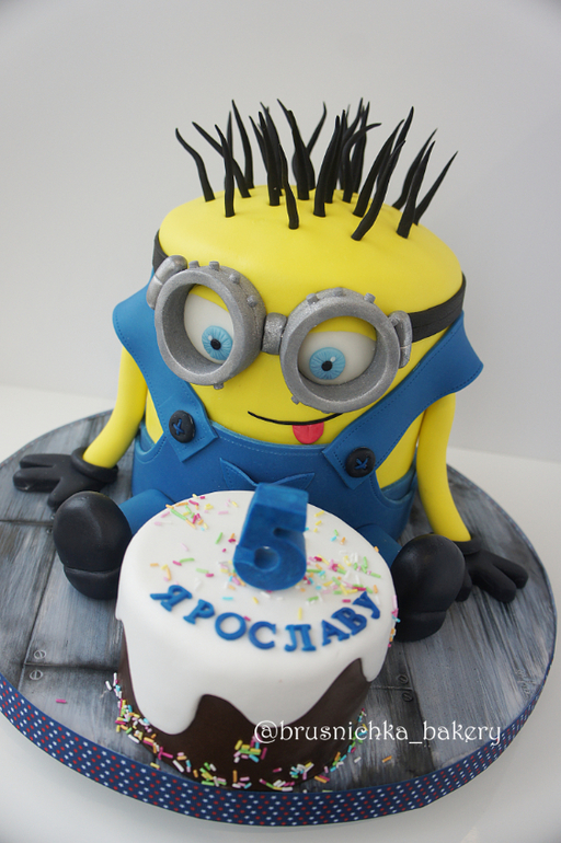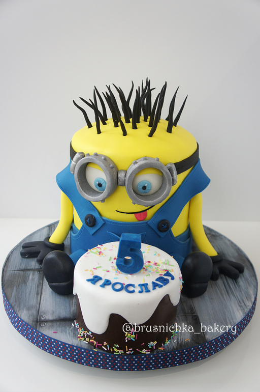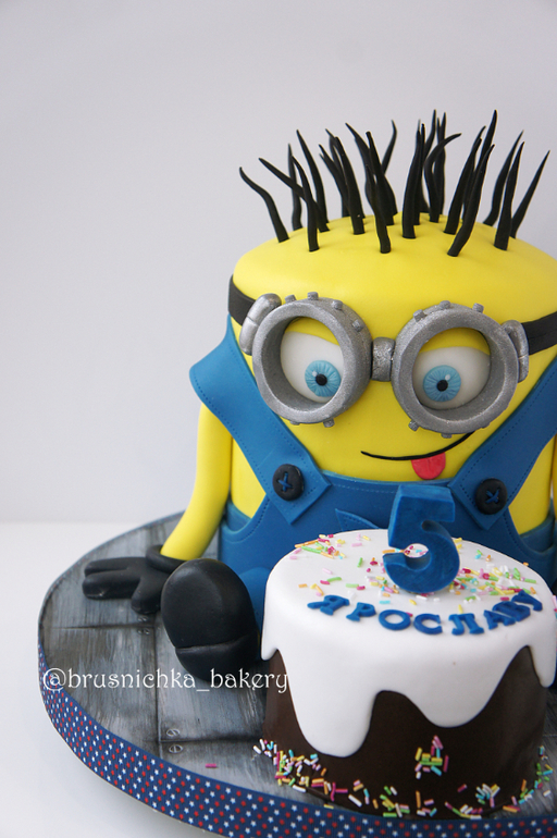 Торты детскиеМой первенький миньончик,может не совсем удачный он конечно получился(тупоголовенький),но именинника порадовал.а это главное! В миньоне два яруса молочной девочки с клубникой и сырным кремом,в маленьком тортике шоколадный торт. Вес 4,8кг