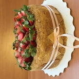 Мильфей - это наполеон с ягодами. Ничего суперсложного. Фото не очень удачное, но по идее это он. Думаю, что коржи обрезаны в кружок до выпечки, край склеился.